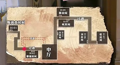 密道的出口也是走廊,只不过密道把B102房间给绕了过去,往前走直接就是甄调查住的B101。