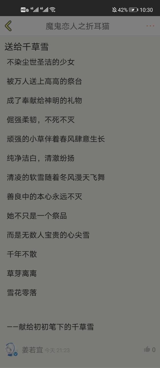 初初“对了!感谢宜宜对雪雪的评价呀!啊啊啊,真的好用心!爱你哦(。・ω・。)ノ♡”