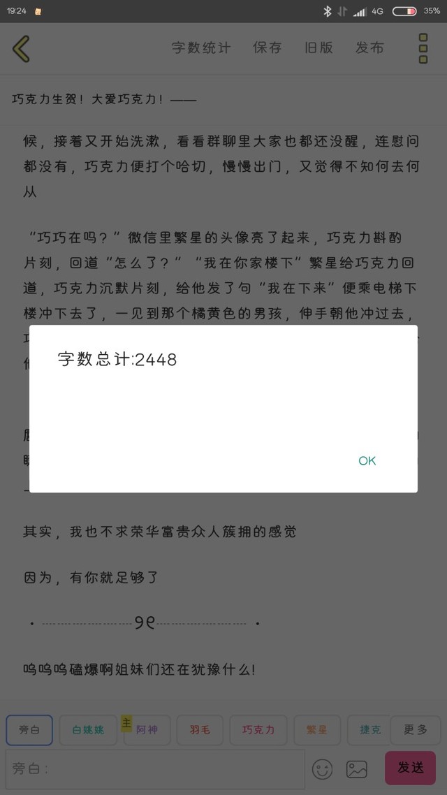 “叮叮叮”巧克力皱眉打开手机,置顶里一个人的消息亮出四的消息,是……繁星的消息啊,“巧巧,晚上好啊”“你发在群里的消息我看到了”“不建议的话记得带上我”“明天见哦”巧克力看看时间,自己发的时候是六点半多,繁星发给自己就已经七点五十了,想到这,他不禁嗤笑一声,又像换副面孔打字“好的哦,繁繁记得早睡哈”