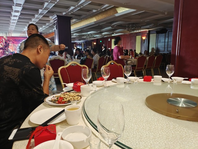 作者大大:这一桌就只有我和我爸妈坐在这,这桌还是在正中央的