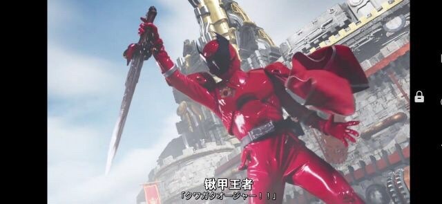 他被一个金色的宝石状外壳包围在里面锹甲虫的神灵飞过来穿过宝石帮助其变身为一个红色的锹甲虫战士