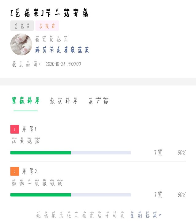 卑微狐狸:咳咳咳群投票结果出来啦,非常出人意料。