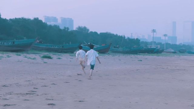 严浩翔也不甘示弱,奋力追赶,甚至还像企鹅在奔跑的样子。两人在沙滩上肆意奔跑,一步又一步,留下一个又一个脚印。