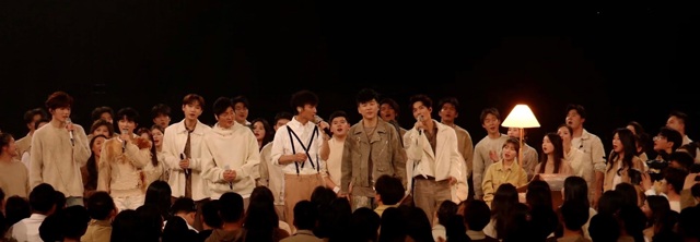 男队这次的主题都是走心的,苏眠先是和他们一起表演了《一想到你呀》。