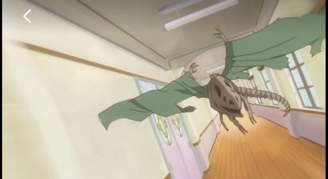 正当猫咪们嚎叫着准备攻击时,走廊的另一端飞来了一只恐龙