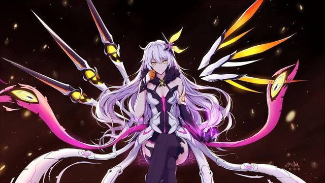白樱紧闭的双眼睁开,原本的黄瞳竟变成了红色,随后,白樱背后的三道圣痕发光,召唤出了黄色触须——空无之钥