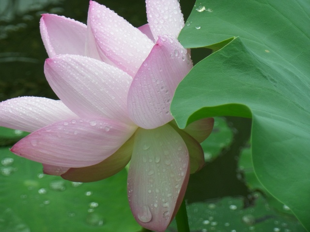 清晨秋雨绵绵,零星的粉荷,雨露均沾,娇艳欲滴。