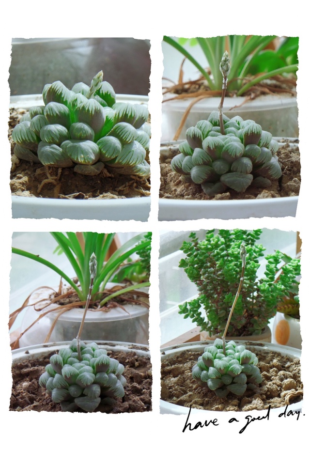 本不在意,一心只想只要活着就行。谁知某天闲来“检阅”花架上的一溜多肉。发现玉露叶片中间竟似抽出一个花苞。上网一查,原来玉露真的会开花。惊讶又惊喜:玉露竟然会开花,眼前的玉露虽冻龄,竟也能开花。