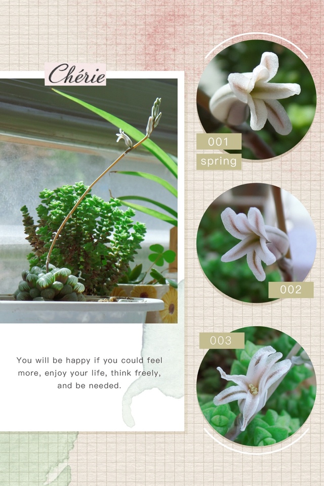 花儿也如玉露叶般,粉白色呈半透明状,有一种能拧出水的感觉。迎光看出,晶莹剔透,干净清爽,还似有水珠熠熠闪光。头一次见玉露花开,被惊艳到了。