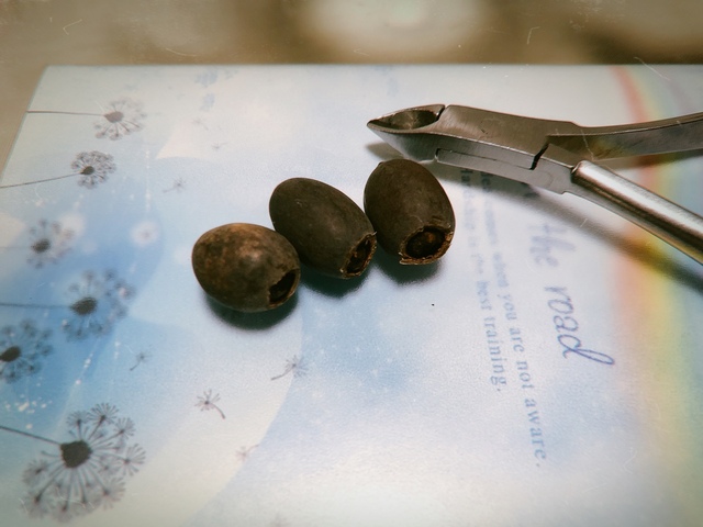 辨认出种子有凹点的那头,用指甲钳破口,注意不要伤到种子胚体,且剪破的部分不能超过种子的三分之一。破口是为了好浸泡快点出芽。