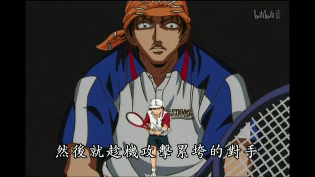 枫絮:对手的策略是打曲球让越前来回的跑,来消耗越前的体力。而越前把既低又靠近底线的球,不停的打到对手的脚边,所以对手不得不弯着膝盖,一直保持着低姿势可是会消耗平时两到三倍的体力。