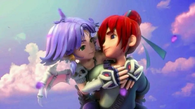 一个绝色少女在花丛中飞舞着,宛如花间精灵,银铃般的笑声时隐时现,背后一个赤发少年在追赶着她,紫瞳中满是柔情笑意;过了一会儿,少女又趴到了少年的背上,玩笑般地将一朵花别在少年耳旁,少年回头,与少女对视,两人的眼中都映着对方的影子,少女亲昵地将脸贴在少年的脸旁,少年则是满满宠溺地任由少女在背上胡闹,笑声不断地散落在他们走过的路上……