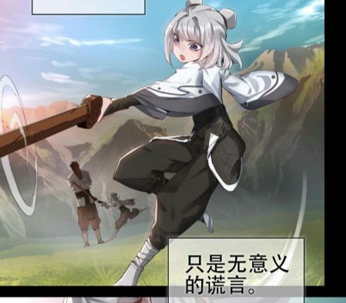 镜现在的年龄,大概推测也是十岁左右。银色的短发,还扎着两个丸子,带着紫色的发卡,上身是白色的练功袍,下身是黑色的练功裤。