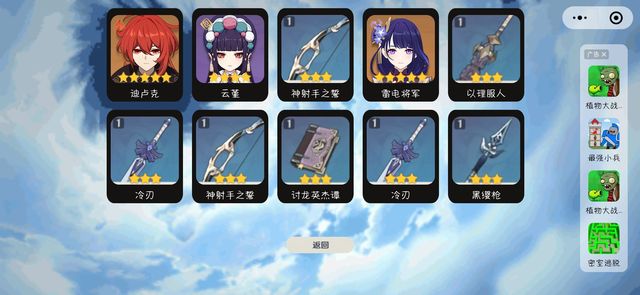 【原神系统:1.迪卢克2.云堇3.神射手之誓4.雷电将军5.以理服人6.冷刃7.神射手之誓8.讨龙英杰谭9.冷刃10.黑缨枪】