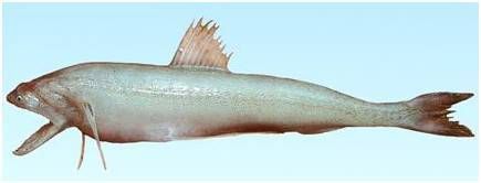 九尾拉起鱼竿,甩上来一条龙头鱼,30cm长,身体长形,接近圆筒状,柔软。眼睛小,脂眼睑发达。身体乳白,肉质细腻。
