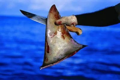 没有鱼鳍的它们,无法游动,伤口承受海水中盐分腐蚀的同时,坠落海底,死亡之前被猎食者撕咬。