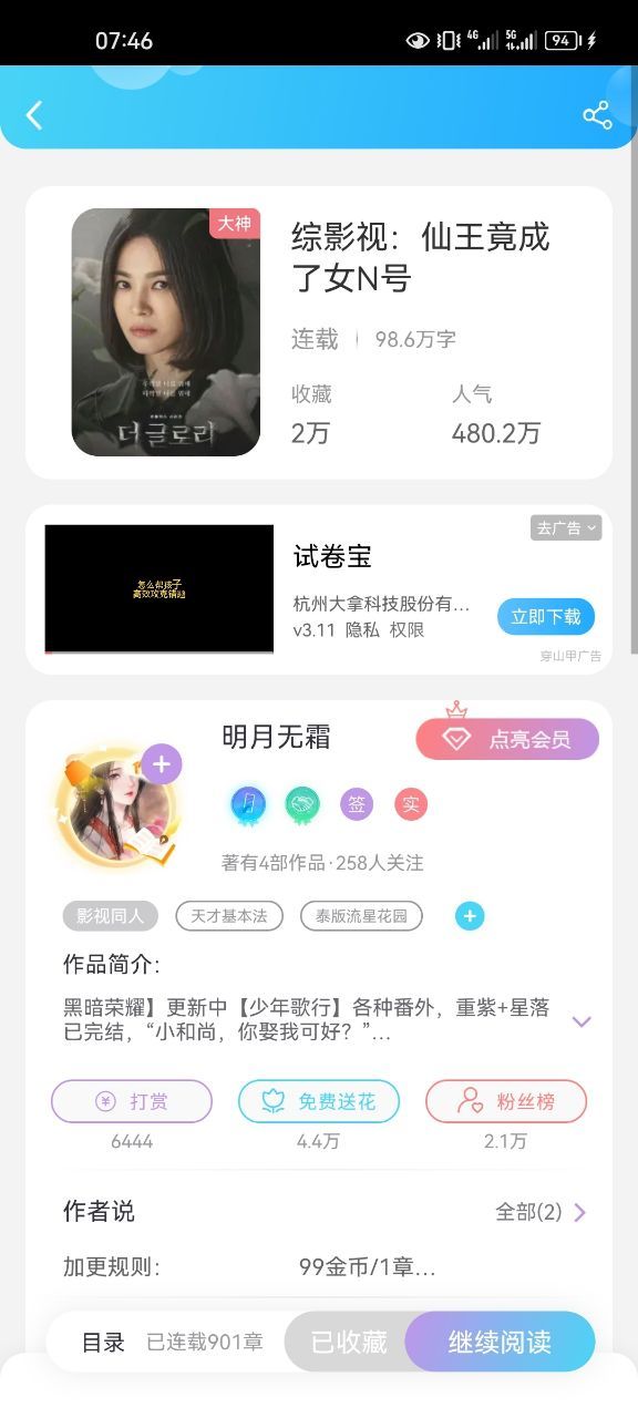 作者:主页的另外一本《综影视:仙王竟成了女N号》也在更新黑暗荣耀哦,喜欢的可以移步。