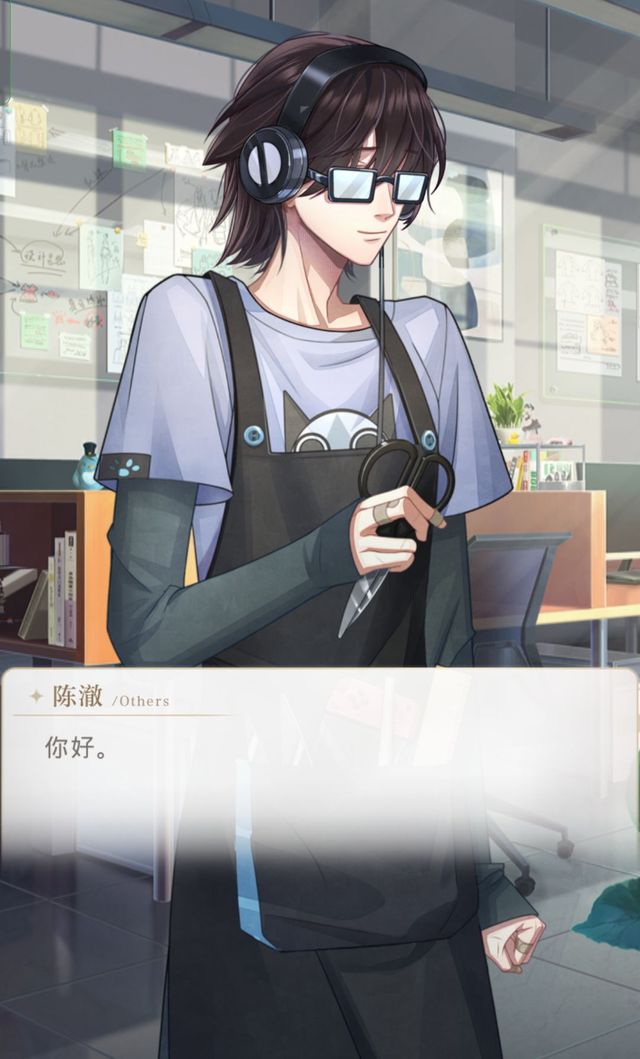 那个叫陈澈的男生从一堆面料里抬起头,扶了扶眼镜,略微拘谨的看了你一眼。
