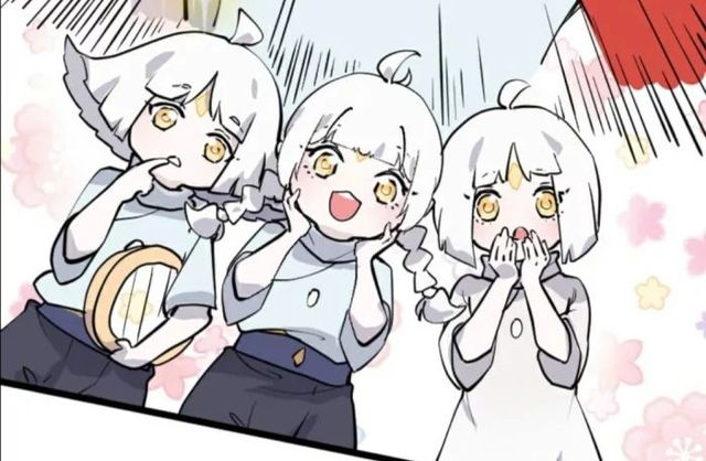 小雨看到冲天辫拿着水正走向白鸟那边,一脸看戏的表情戳了戳平菇的胳膊。
