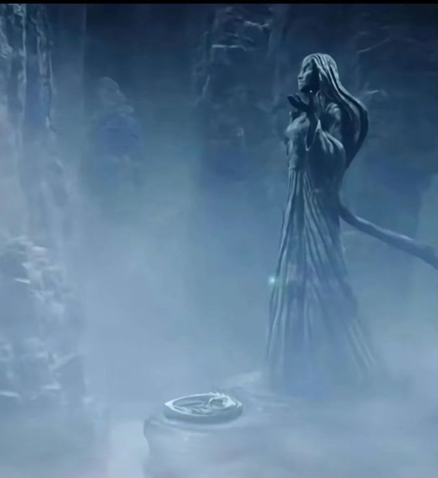 河底,屹立着一尊女神石像,她终于看向那个光亮是什么,是女神石像下沉没着一个超大的蚌壳。