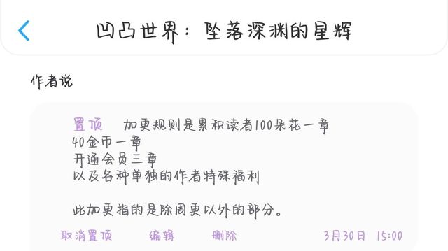 世羽阡陌(作者):《坠落星辉》竟然迎来了它的第一次会员加更