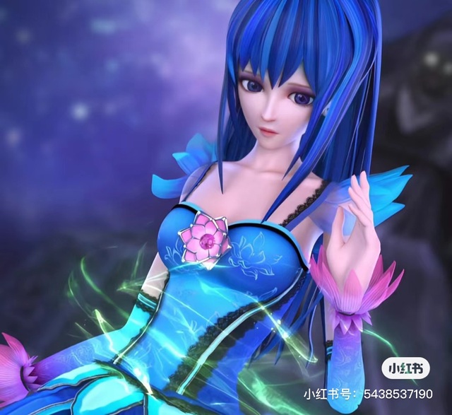 很快,陈思思的服装发生改变,短裙变成了华丽的长裙,头发也从马尾变成了长发,头上还有朵茉莉花。唯一不变的是仍旧纯洁的蓝色,她变得高贵,妩媚起来