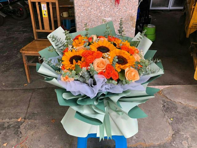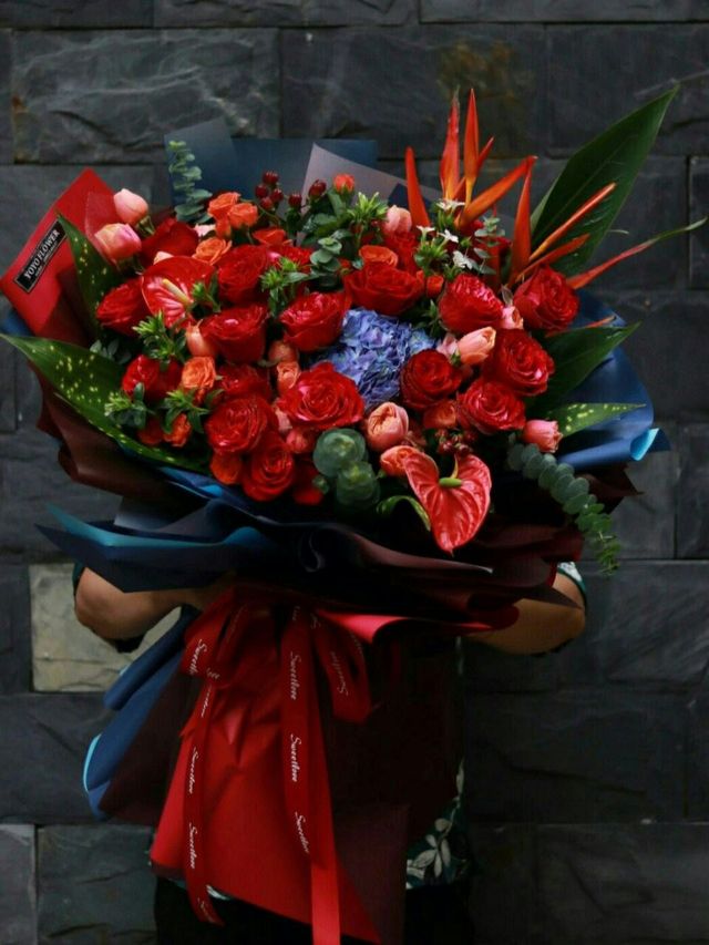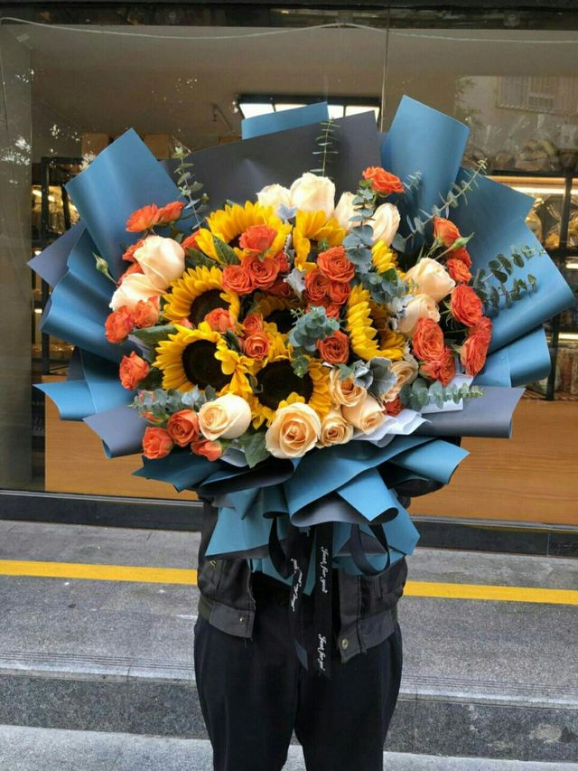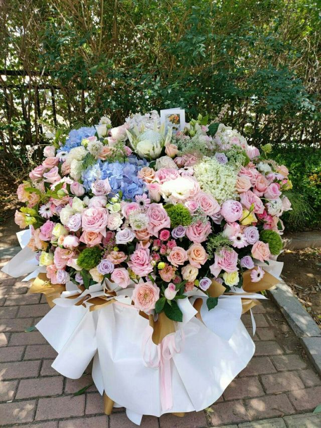这时,六大身着西装,走了出来,每个人都捧着一束花