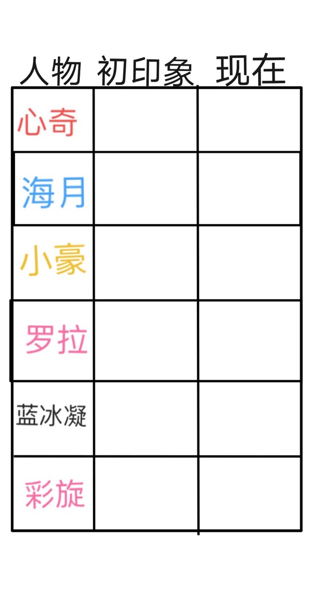 表格框架是找的,角色名是我填的,如果你们想写可以拿去。