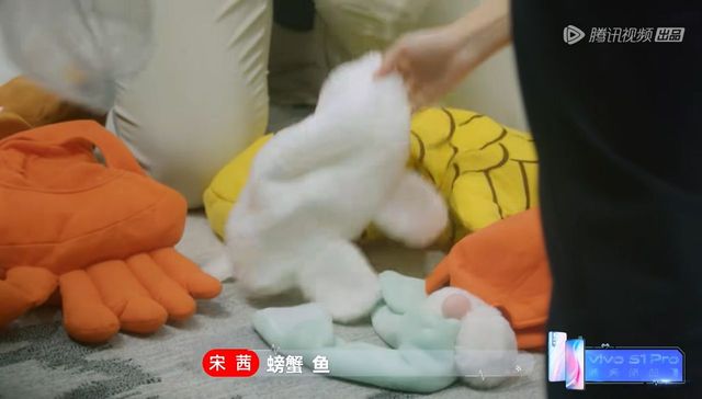 杨凯雯拿着头套走过来给大家分