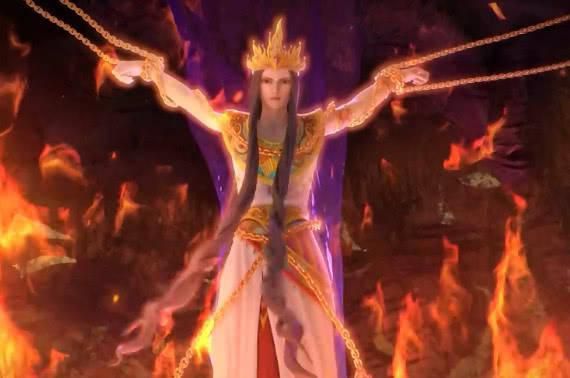 火之山洞,一个容颜绝美的仙子被囚禁在里面,他的长发随微风微微吹起,眼睛却没有光泽,一片深不见底的黑暗