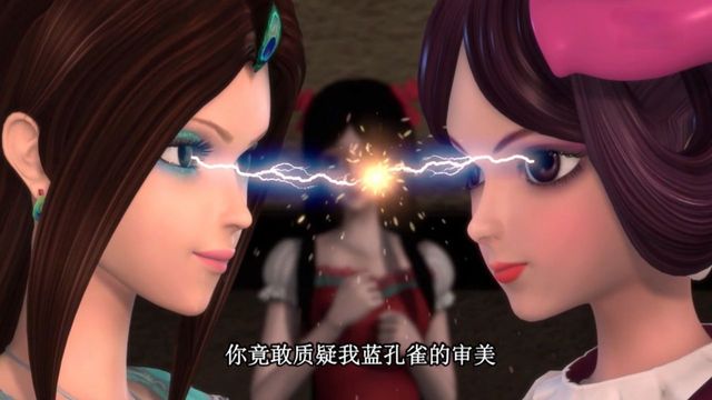 字幕:菲灵:蓝孔雀,你的造型品味也很一般嘛