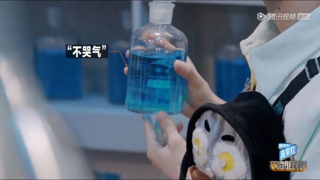 办公室内就放着多瓶液体的“不哭气”,液体的“不哭气”是蓝色的。