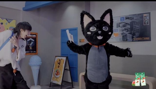 往里走的时候,遇到一个人扮的玩偶猫咪: