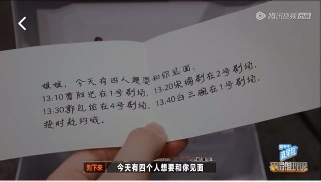 刘下来:“而且,侦侦并不知道,自己跟他们约了一点,在剧场见面。”