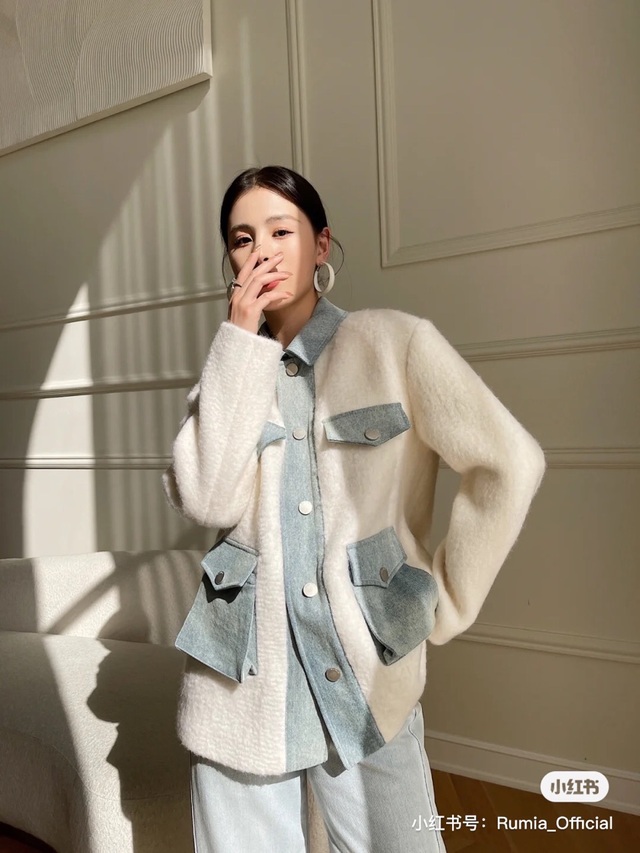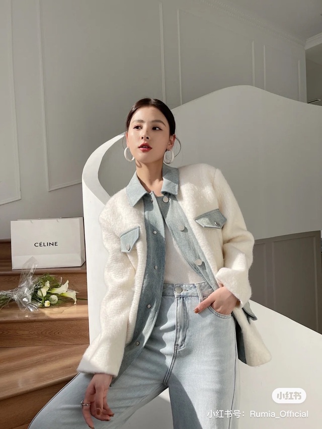 Rumia | 马海毛牛仔拼接外套套装