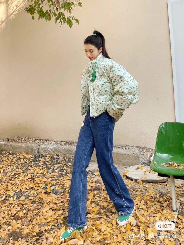 定制草绿花朵小清新羽绒服