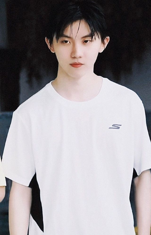 马嘉祺白色上衣黑色短裤,头发和脸都有水珠滴落,看样子最后一节课应该是体育课。