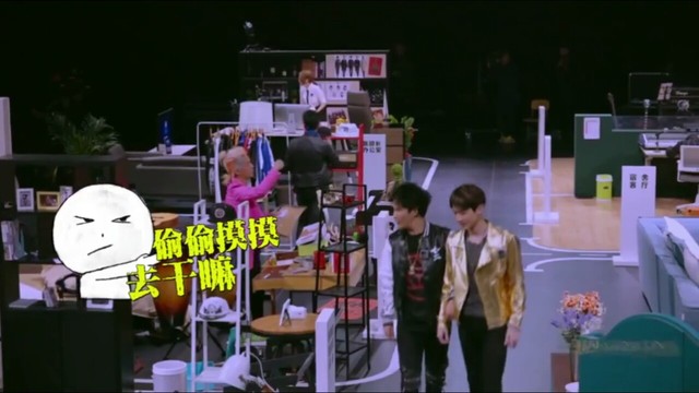 米师妹悄悄的跑到白rap身边,示意有八卦快去看看。
