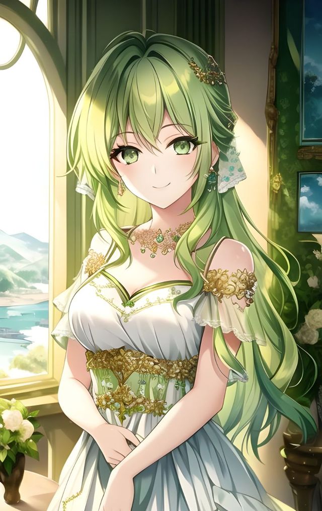 少女巴掌大的小脸,一头绿色飘逸的长发,弯眉下是是一双清澈的眸子。见有人进来,亲切去他们打招呼。