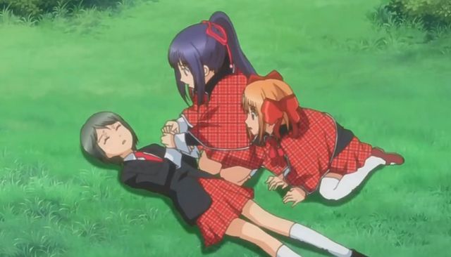 梦悠刚跑没几步就看到日暮晴子追上来,身体一僵,日暮晴子看到返回的梦悠,感到微讶。