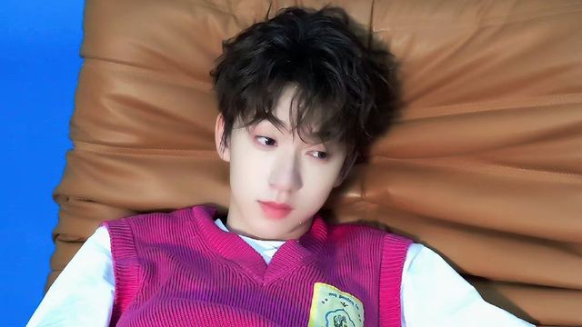 贺峻霖躺在懒人沙发上 挑眉笑了起来