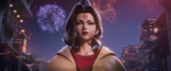 烟花光照下,身着斗篷的女子从远处缓缓出现,掀开兜帽后,狄仁杰的口中喊出一句:“城主”。