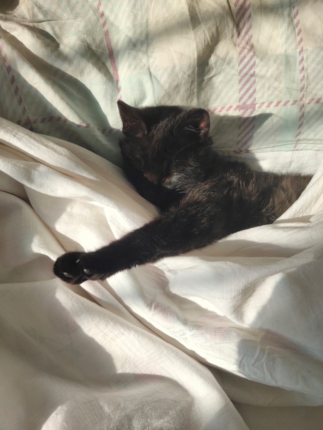 莫问一把拉开被子,一个毛茸茸的小黑团子正蜷缩在被子里呼呼大睡。