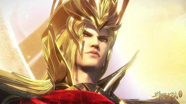 高大挺拔的身躯,在一身合体的金色系战甲的包裹下更加的英武不凡。金发金眸,头戴金冠,神情孤傲又威严端正,整个人散发着帝王般的霸气,令人臣服。