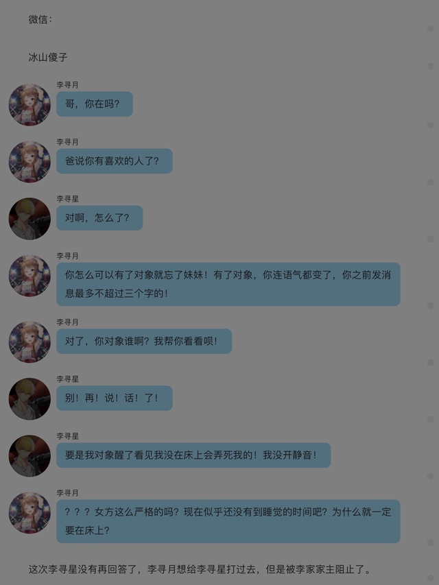 李寻星:可是……不带手机真的很无聊啊,寻月她在跟我聊天呢。