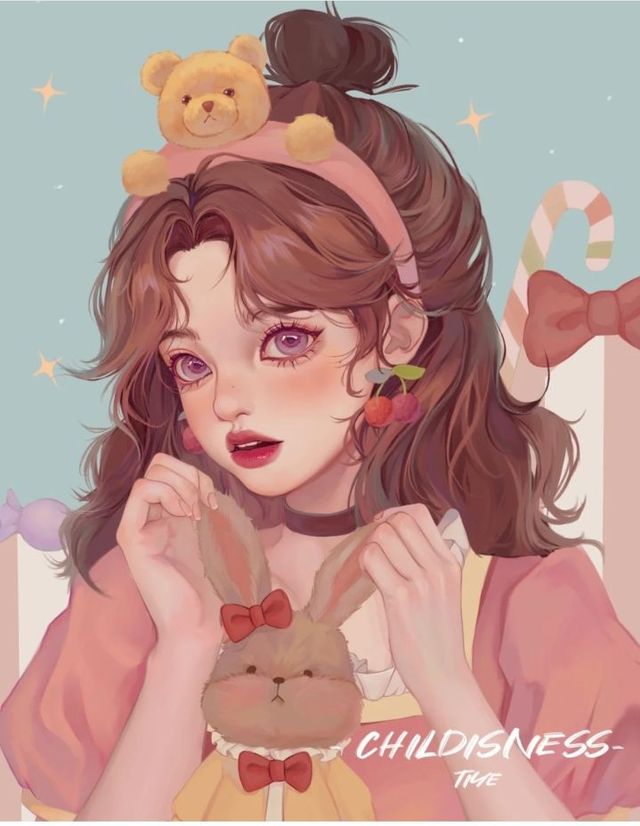 女孩有着精致的五官,白皙的皮肤,染着一头棕黄色的头发,扎着半丸子头,头上还戴着小熊发箍。