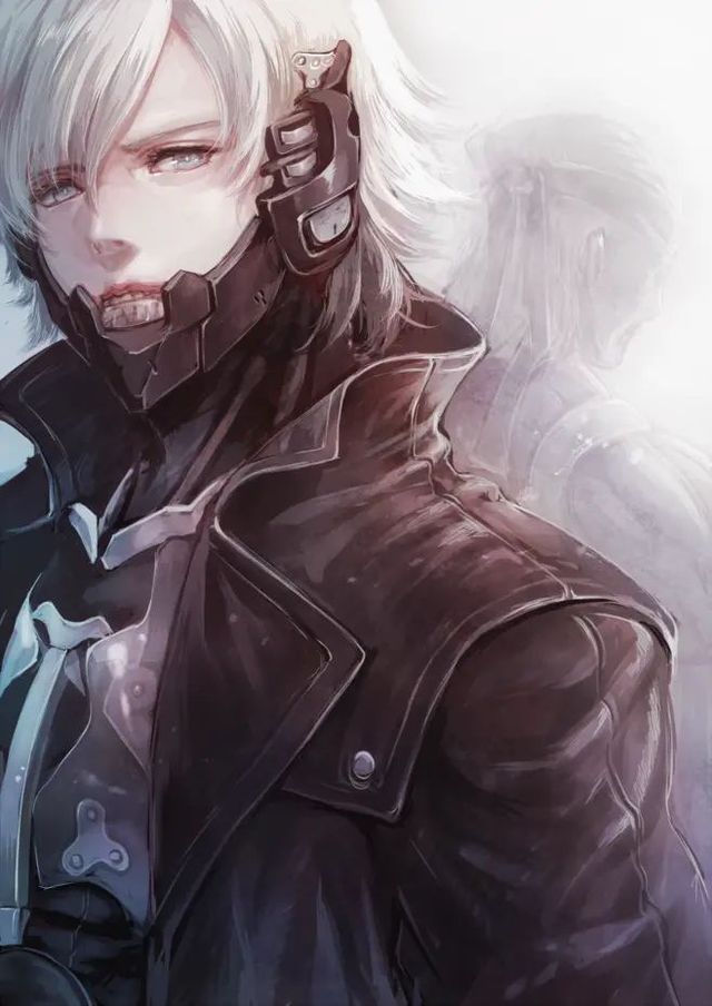 白发秀眉,面容俊美,一身黑色的皮衣显得整个人身材高挑修长。