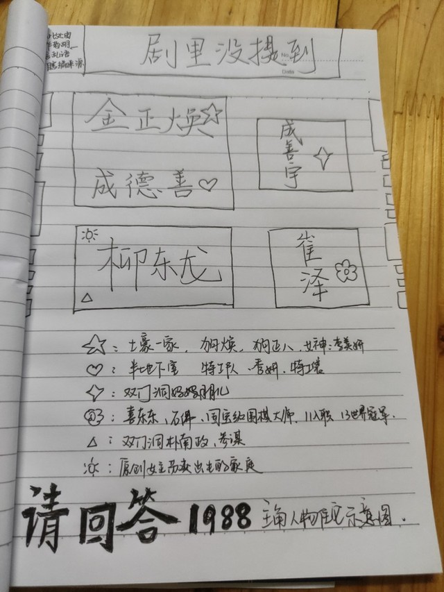 作者五块:人工绘制双门洞的住宅图和主要人物简介,方便写文,来吧!给你们欣赏一下我些许潦草的示意图。(怕本子丢了找不到,这个给我当草稿用。)