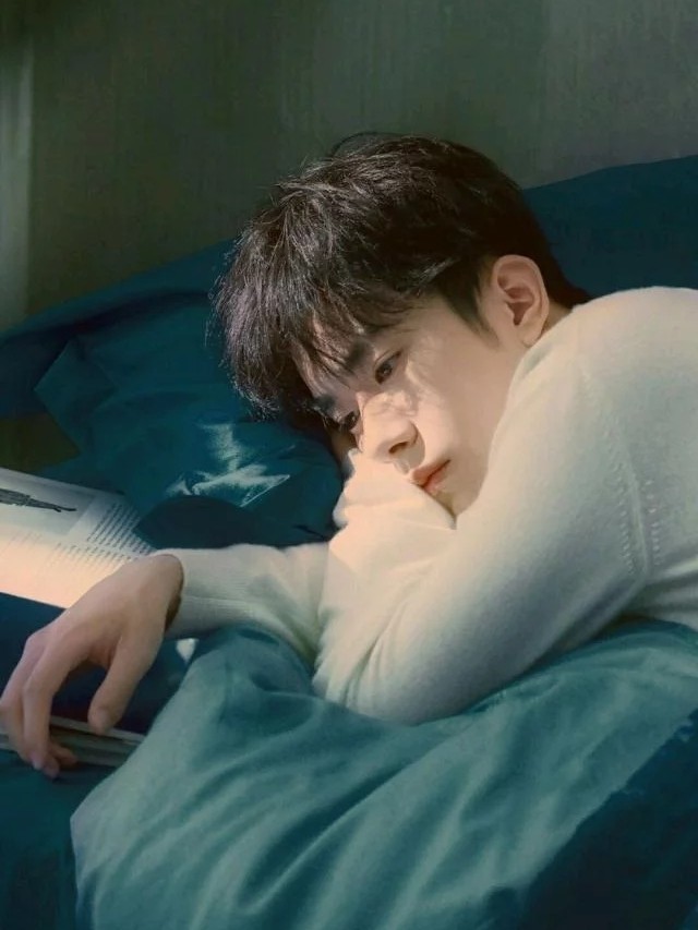 易烊千玺躺在床上,肤色白皙、五官清秀。
