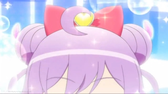真中啦啦:(已戴上蝴蝶结后、淡紫色的丸子头,睁开眼睛闪过青色的眼瞳)下去了…………